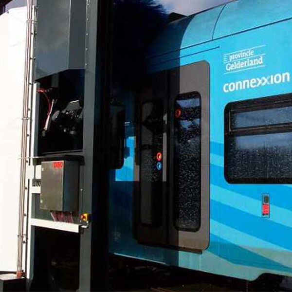Washes the lateral surfaces and the edge areas of the roof fast and careful. The swivel and automatic avoiding brushes guarantee a gentle washing of the vehicle surfaces without risk of damage. The vehicle drives under its own power through the washing system. Therefor it is just necessary to have a placement area of approx. 7 x 10 m for the washing system.