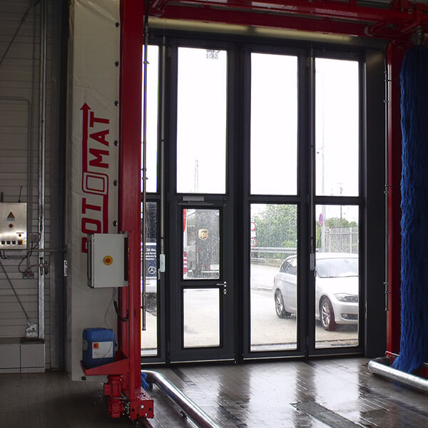 Omnibusse, LKW's mit und ohne Anhänger, und Transporter vollautomatisch, schnell, schonend und gründlich. Die Seitenbürsten bestehen aus einzeln auswechselbaren Bürstensegmenten mit weichen PE-X Bürsten.